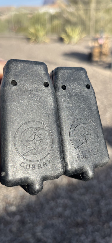 Found these in my dad’s stuff. Look kinda like AK mags, but wont fit. Cobray logo on the bottom are the only markings.